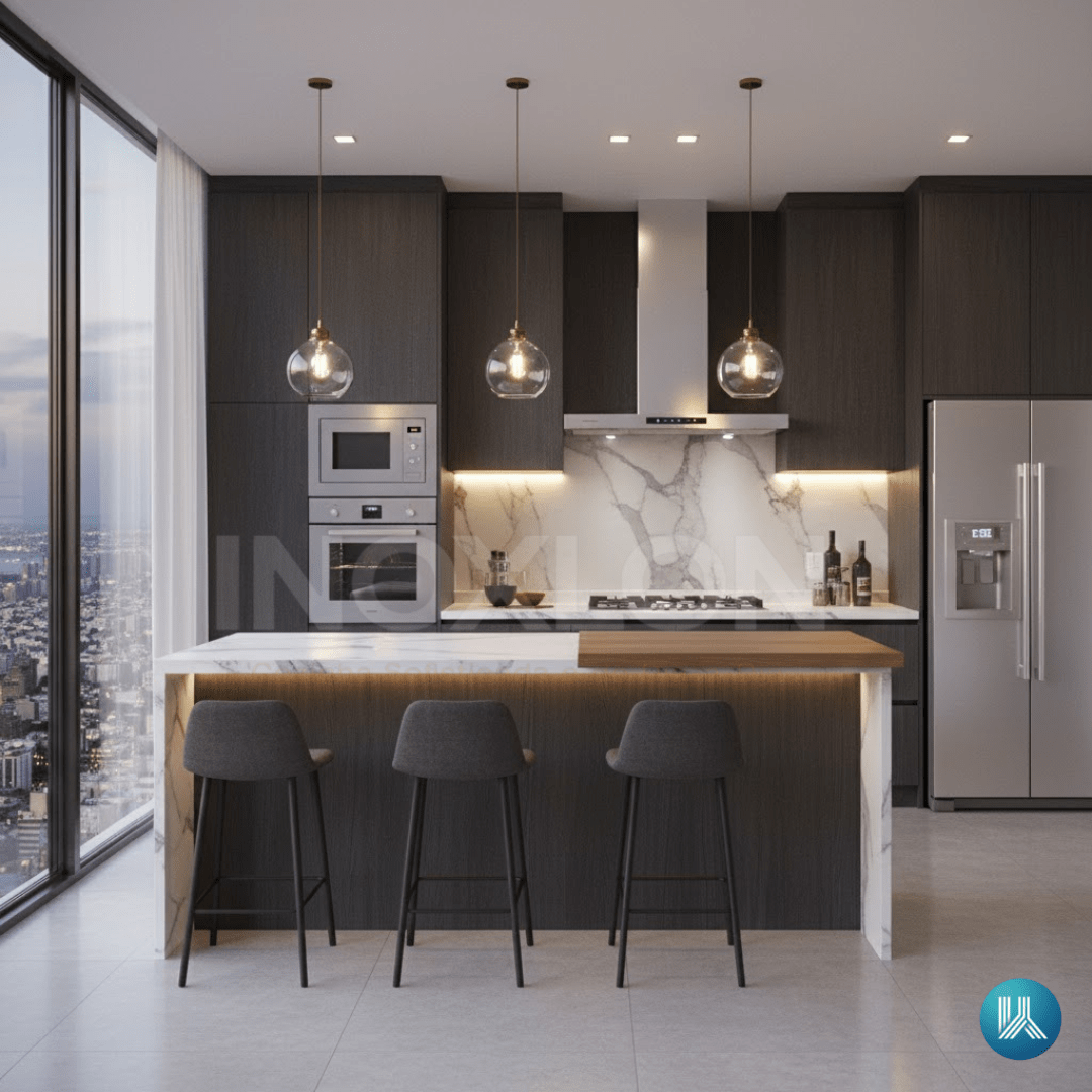 Dicas de Cuidados e Manutenção: Para preservar o padrão de luxo da sua Cozinha Elettromec, a manutenção deve ser cuidadosa e frequente. Sempre desligue os aparelhos da rede elétrica e feche o fornecimento de gás antes de iniciar qualquer limpeza. No Aço Inox Escovado, utilize apenas pano macio ou esponja com detergente neutro e água morna, seguindo rigorosamente o sentido da granulação do aço para evitar riscos permanentes e manter o brilho. Nas Trempes de Ferro Fundido, utilize escovas de nylon e seque-as imediatamente após a lavagem para prevenir a oxidação. Na Coifa de Ilha, higienize os filtros metálicos a cada 2 meses e verifique a saturação dos filtros de carvão ativado. Evite estritamente o uso de produtos abrasivos, palhas de aço ou limpadores à base de cloro, garantindo que sua cozinha mantenha o desempenho e o status de nova por muitos anos.