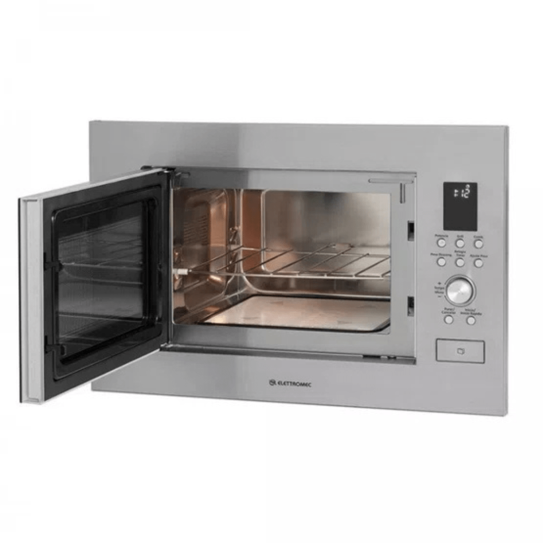 Tecnologia Flat e Grill: A ausência de prato giratório maximiza o espaço interno e facilita a higienização, enquanto o grill elétrico soluciona a falta de textura dos micro-ondas comuns, entregando pratos dourados.