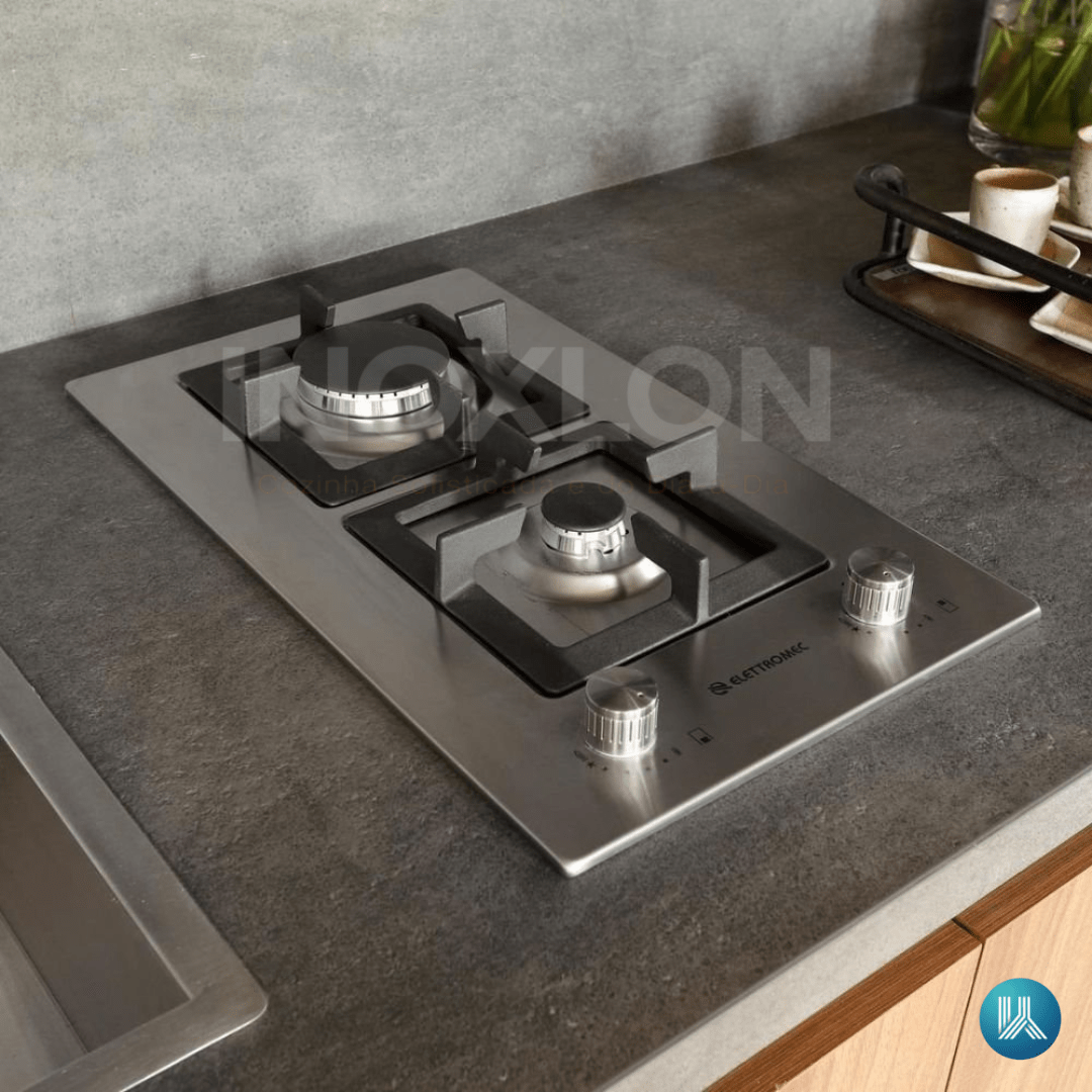 Acabamento em Aço Inox Escovado: O design clean e minimalista em inox de alta qualidade resolve a dificuldade de manutenção, sendo resistente a manchas e extremamente fácil de limpar no cotidiano.