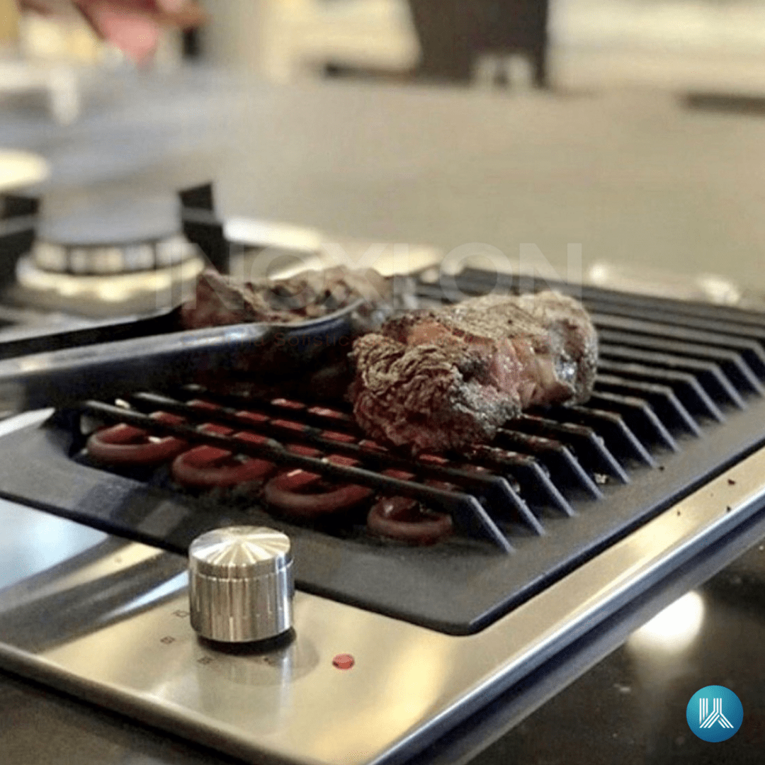 Pedras Vulcânicas e Churrasco sem Fumaça: Esta tecnologia soluciona a necessidade de preparar churrasco em ambientes internos, pois as pedras vulcânicas absorvem a gordura e reduzem significativamente a fumaça, mantendo o sabor autêntico do grelhado na brasa sem a sujeira do carvão.