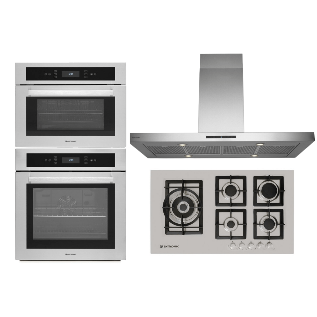 Cooktop Quadratto Elettromec 5 Queimadores a Gás 90 cm Bivolt Quant: 1xCoifa de Ilha Elettromec Milano 90cm Quant: 1xForno Micro-ondas Combinado Sole Elettromec 40 Litros 60cm 220V Quant: 1xForno Elétrico de Embutir Sole Elettromec Multifunção Digital 67L 60cm 220V Quant: 1x - Garantia: 2 anos