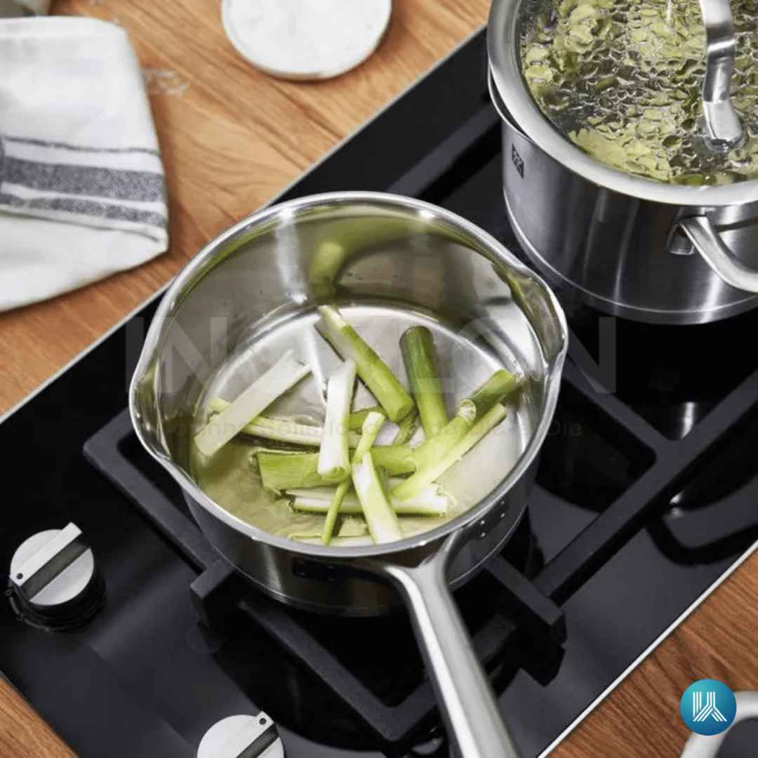 O conjunto de panelas de 5 peças ZWILLING TrueFlow é o "talento versátil" que sua cozinha premium merece, tornando o ato de cozinhar ainda mais prazeroso. Este conjunto de luxo é composto por três caçarolas (16, 20 e 24 cm), uma caçarola (20 cm) e uma panela (16 cm), todas com um design inteligente e acabamento em Aço Inoxidável 18/10 de alta qualidade — um material robusto, higiênico, resistente a arranhões e que não altera o sabor dos alimentos.