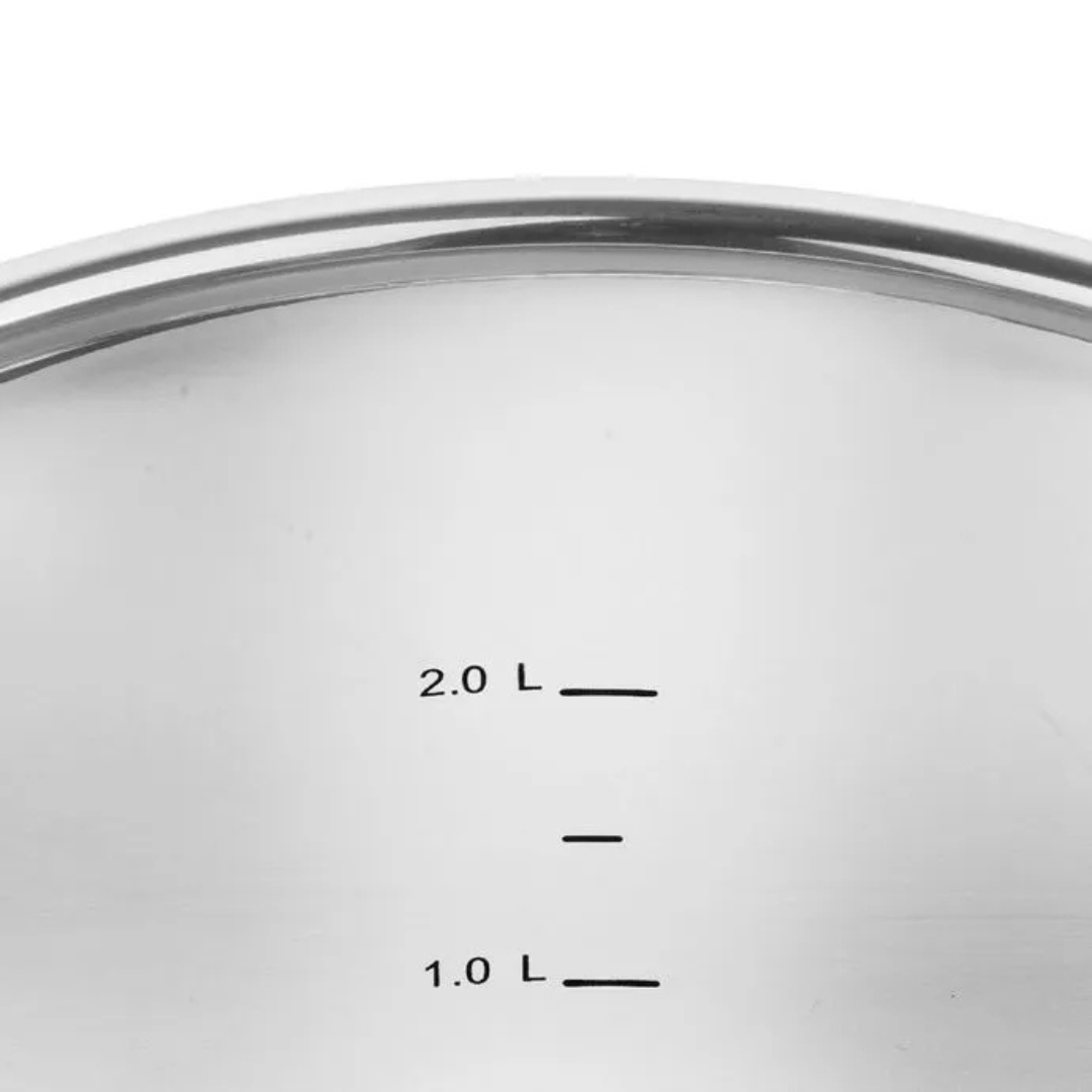 Compatibilidade Total (Indução): Este conjunto resolve a dúvida sobre compatibilidade. Funciona perfeitamente em TODOS os fogões, desde o gás até os mais modernos fogões de indução.Design Inteligente: A borda larga resolve o problema de líquidos escorrendo pela lateral ao servir, permitindo despejar sem gotejamento. A escala de medição interna resolve a necessidade de usar medidores separados, otimizando o preparo.
