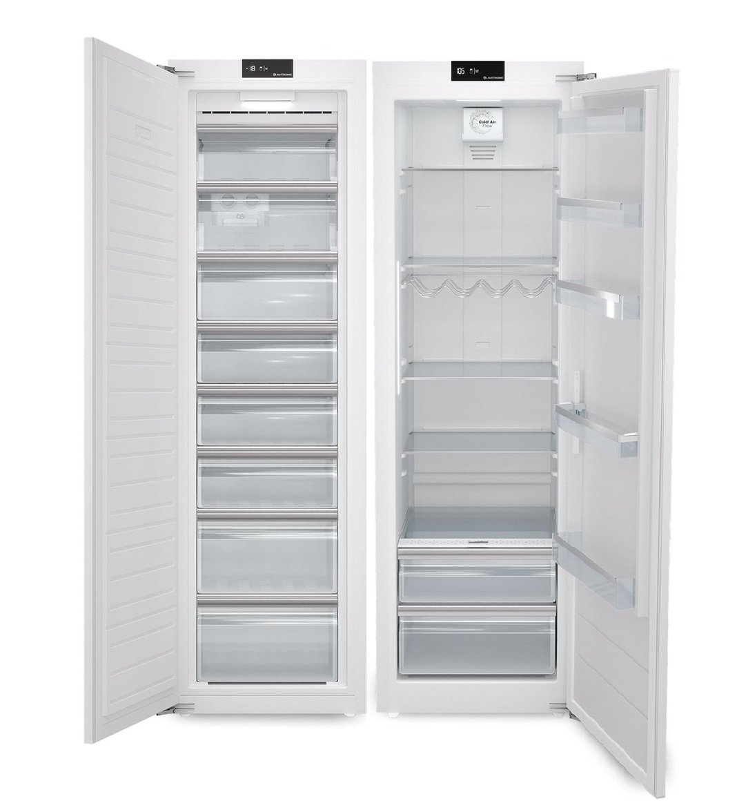 Transforme sua cozinha com um duo premium embutido de alta performance: o refrigerador de 303 L e o freezer de 221 L Elettromec. Ambos com design integrável (revestíveis com portas de marcenaria ou outros revestimentos compatíveis da sua preferência).