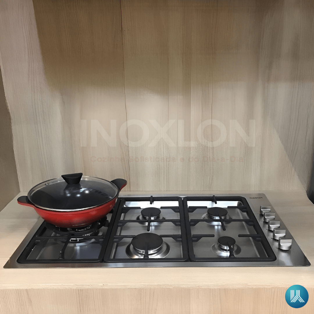 Aço Inox 304 e Acendimento Superautomático: Construído com o material mais resistente à corrosão do mercado, ele garante durabilidade extrema. O acendimento elétrico integrado aos botões oferece praticidade total, bastando girar para iniciar o preparo.