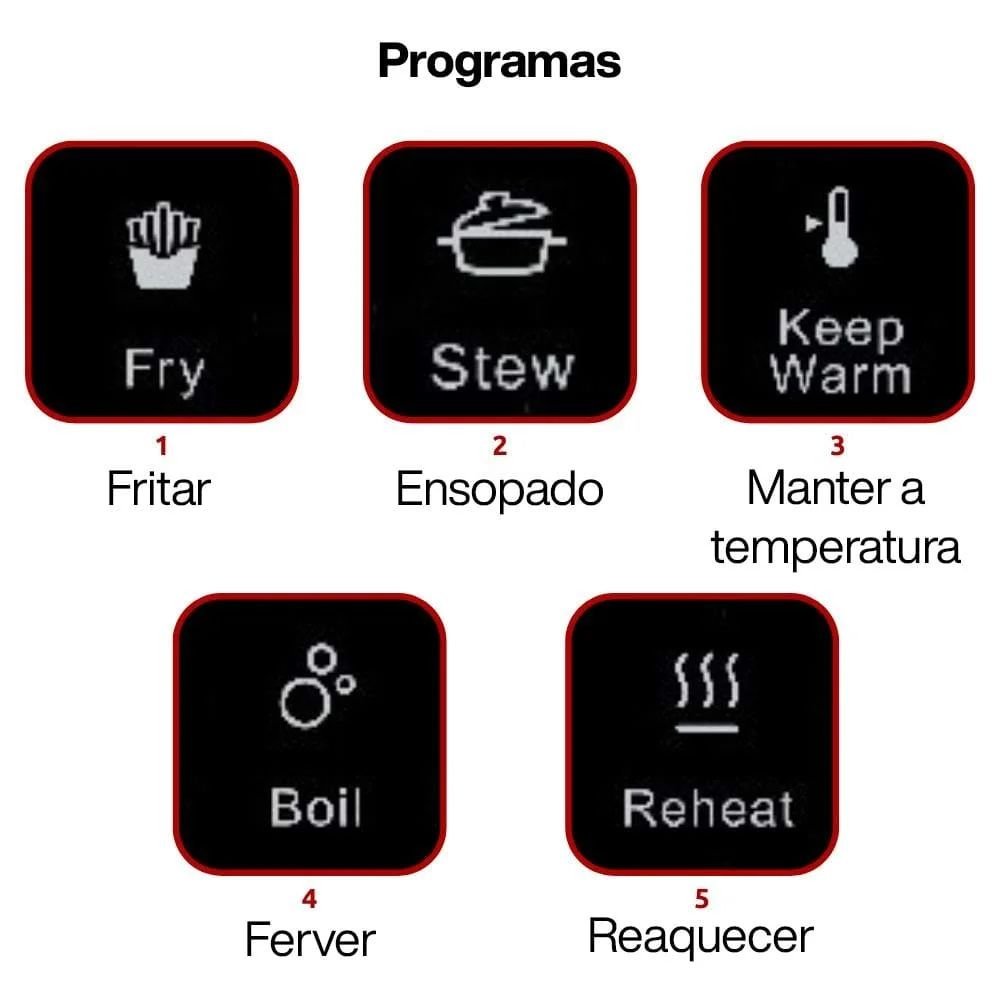 Com até 2000W na versão 220V e 1200W na versão 127V, o Cooktop Ariete 1997 oferece cozimento ultrarrápido e temperatura ajustável até 240°C. São 10 níveis de potência e 5 programas predefinidos que facilitam o preparo de diferentes receitas. Além de rápido, o aquecimento por indução é mais econômico, mantendo o calor apenas na panela e evitando desperdício de energia.