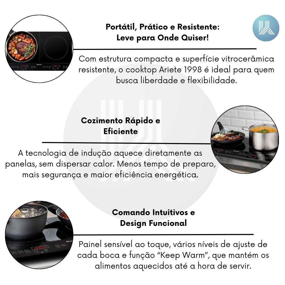O Cooktop de Indução Portátil Ariete 1998 foi desenvolvido para quem valoriza praticidade sem abrir mão da eficiência. Compacto, leve e fácil de transportar, ele é perfeito para quem deseja preparar suas refeições com rapidez e segurança, seja em casa, viagens, pequenos espaços ou momentos de lazer. Com design italiano e funcionamento por indução, entrega desempenho inteligente e economia de energia.
