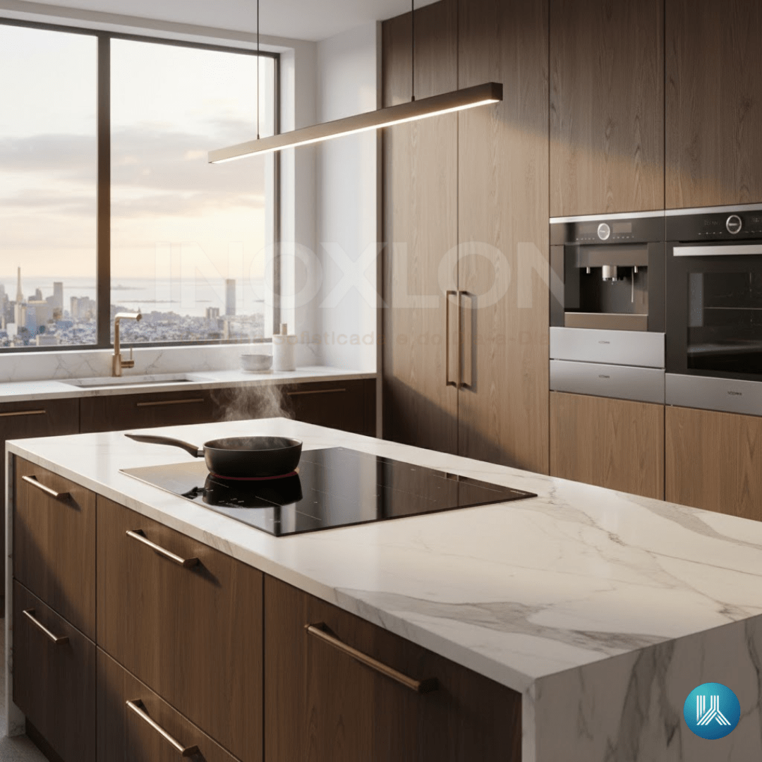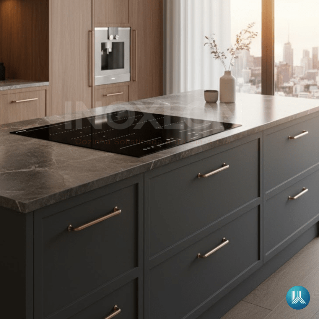 O acabamento em vidro vitrocerâmico preto confere elegância e harmonia ao ambiente gourmet, integrando-se facilmente a bancadas em tons claros ou escuros. Seu painel touch sensível ao toque mantém a superfície lisa e livre de botões, reforçando o conceito clean e contemporâneo característico da linha Arkton Advanced.