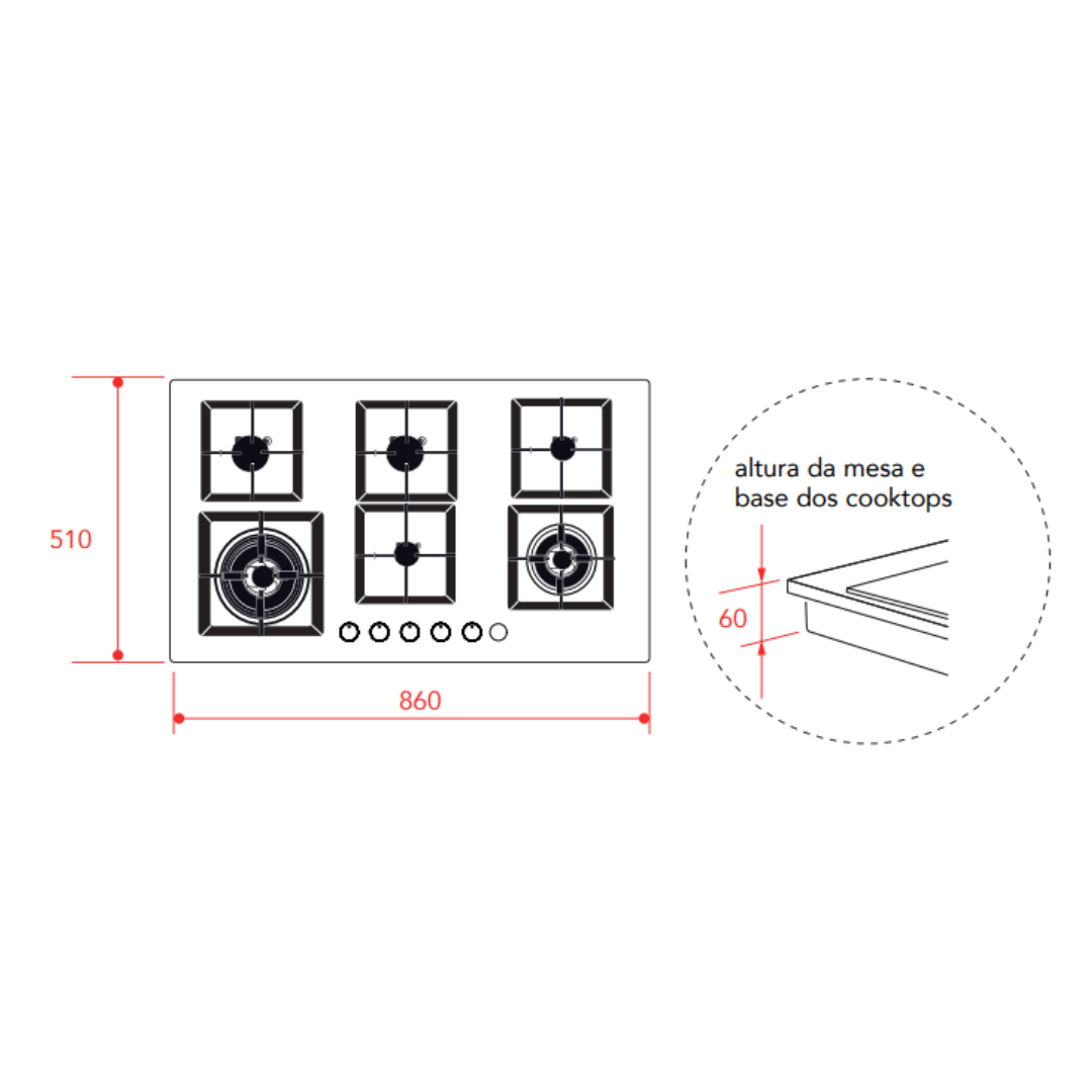 Potência diversificada com 6 queimadores Sabaf/Defendi