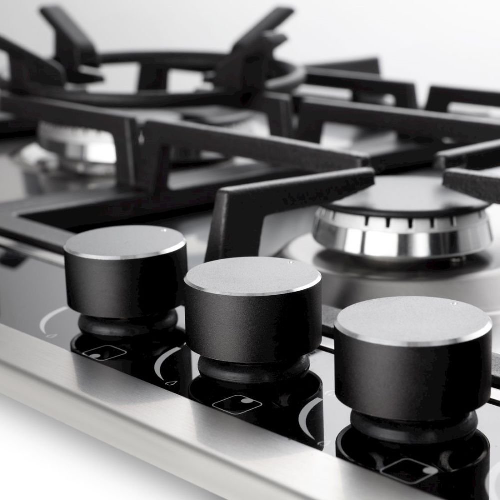Equipado com 5 queimadores que incluem um dual flame de alta potência para selar e ferver rapidamente, além de queimadores rápido e semirrápidos para usos variados, este cooktop atende do preparo cotidiano a demandas mais intensas. O suporte para panela Wok e a distribuição otimizada das bocas aumentam a flexibilidade no fogão, permitindo uso simultâneo de panelas grandes e pequenas sem perda de desempenho.