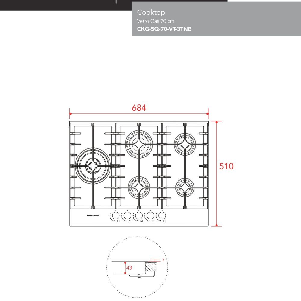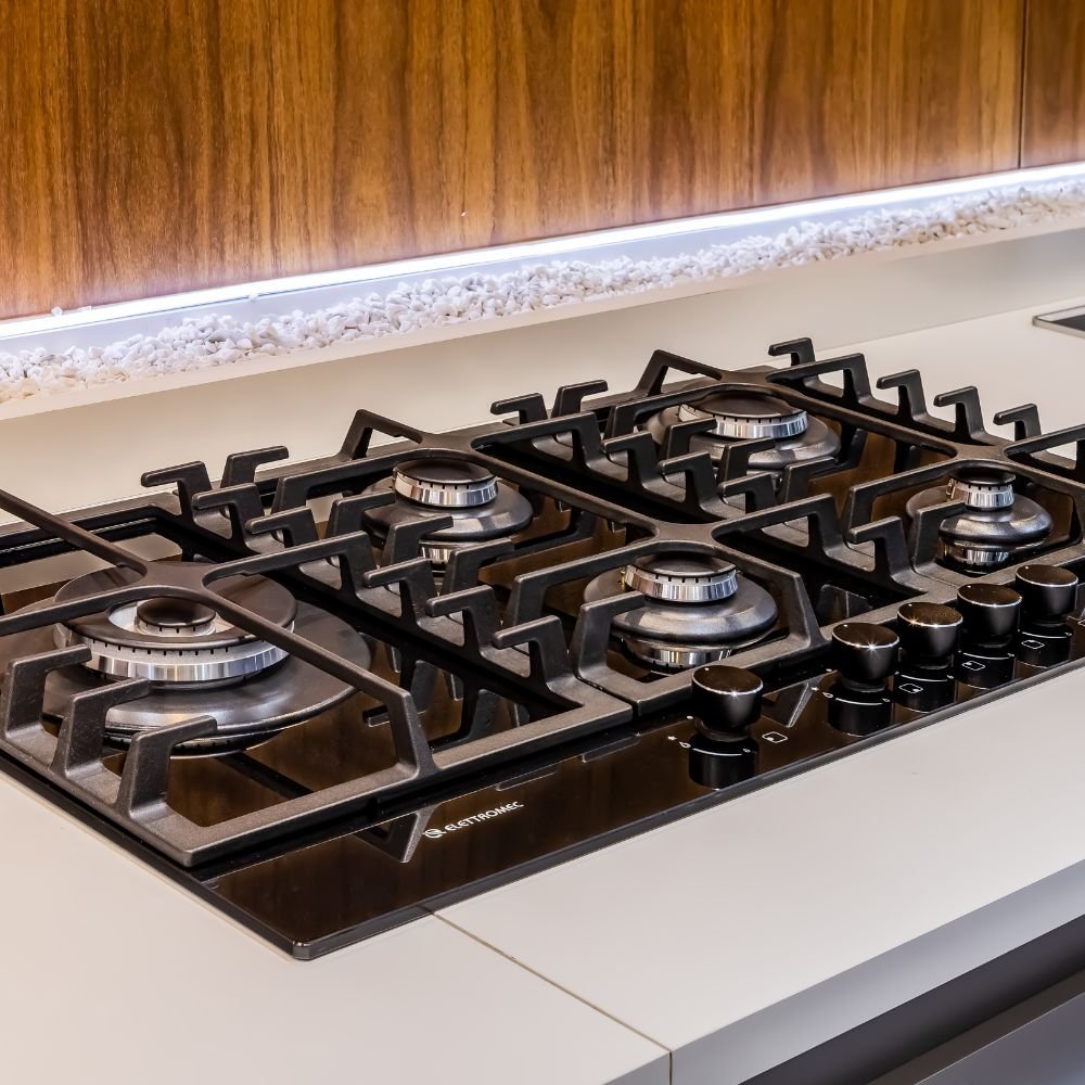 O Cooktop Vetro 70 cm reúne design sofisticado e alta performance, ideal para cozinhas que exigem estética e funcionalidade. Com mesa em vidro temperado preto, acabamento premium e distribuição eficiente de queimadores, oferece rapidez no preparo, segurança e facilidade de limpeza. Compatível com GLP/GN (kit de conversão incluso) e equipado com queimadores originais Sabaf/Defendi, garante durabilidade. Ideal para projetos residenciais e comerciais.