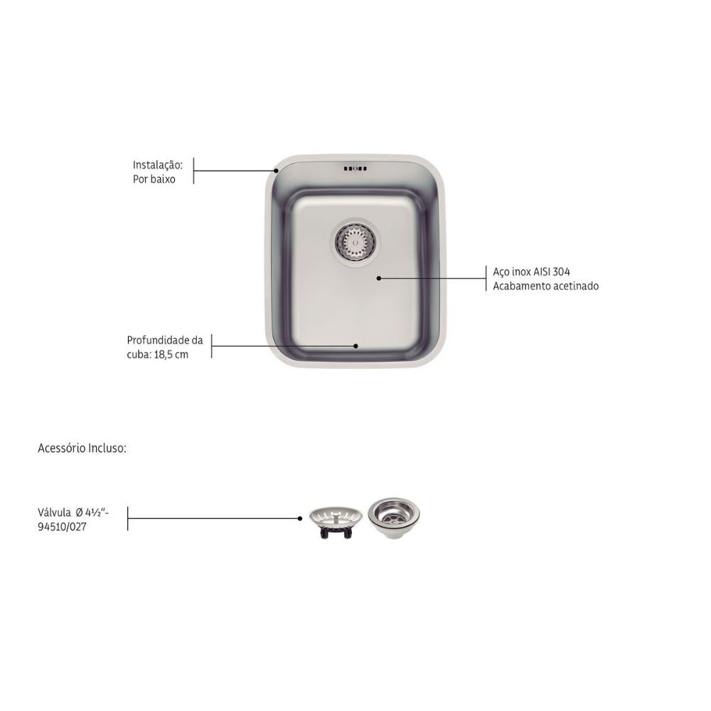 | Produto | Cuba de Embutir com Válvula |