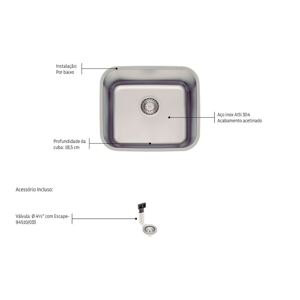 | Produto | Cuba de Embutir com Válvula e Escape |