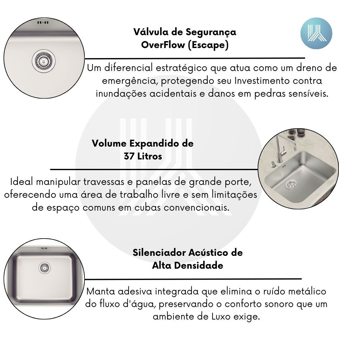 Projetos de arquitetura gourmet que prezam pelo Alto Padrão demandam componentes que unam robustez e inteligência preventiva. Enquanto cubas amplas e profundas costumam gerar preocupação pelo risco de transbordamento acidental, que pode comprometer marcenarias de Luxo, a Cuba Tramontina Dora 50 com Sistema de Escape entrega a Solução Definitiva. É o equilíbrio perfeito entre uma volumetria generoso e a segurança necessária para manter a paz e o status de uma cozinha com Performance Semi-profissional.