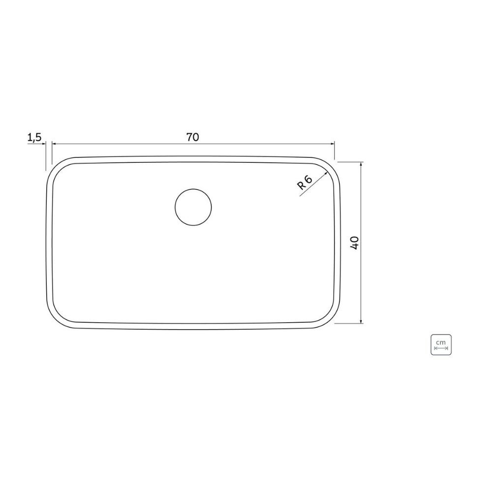 O raio de 60 mm (R6) nos cantos não é apenas uma escolha estética; é um detalhe pensado para que a limpeza seja um processo sem obstáculos, onde nenhum resíduo fica esquecido nos cantos.