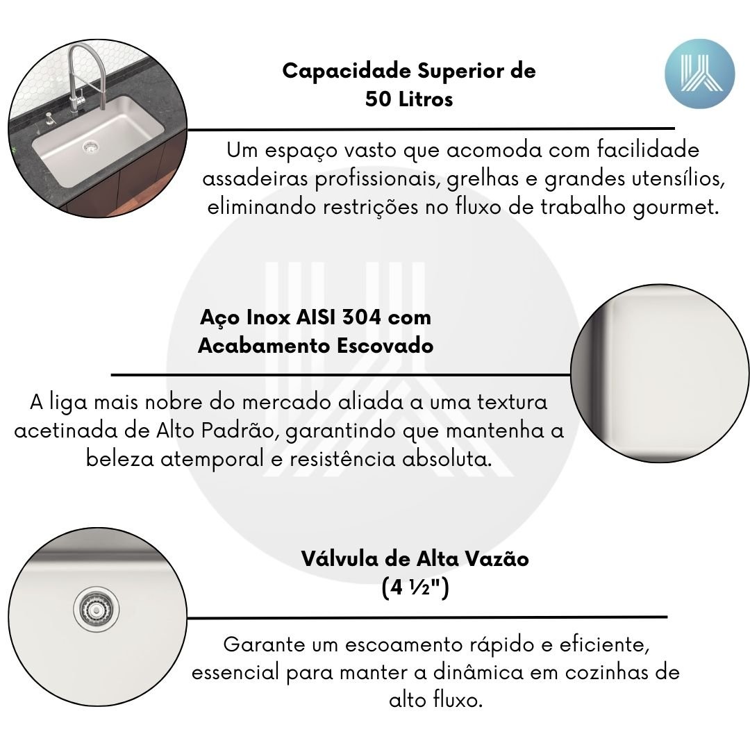 Para projetos de Alto Padrão que não aceitam concessões, a amplitude é a verdadeira expressão da liberdade culinária. Enquanto cubas de dimensões padrão limitam o preparo de grandes banquetes e geram desorganização visual com louças acumuladas, a Cuba Tramontina Dora 70 apresenta-se como a Solução Definitiva. Com uma super capacidade de 50 litros, este item transforma a bancada em uma estação de trabalho sem fronteiras, entregando Performance Semi-profissional necessária para quem faz da cozinha o palco principal da casa.