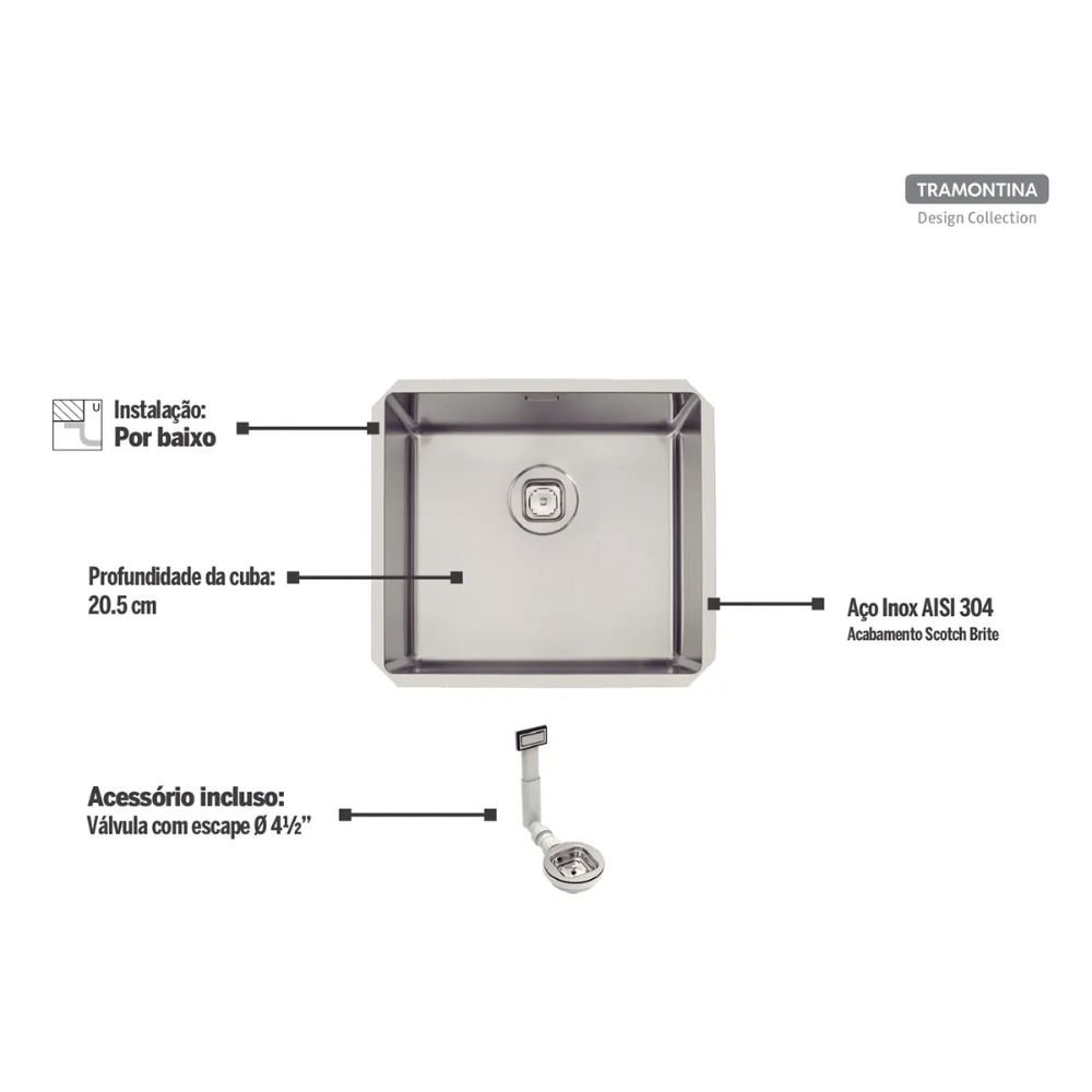 | Produto | Cuba Simples de Embutir com Válvula e Escape |