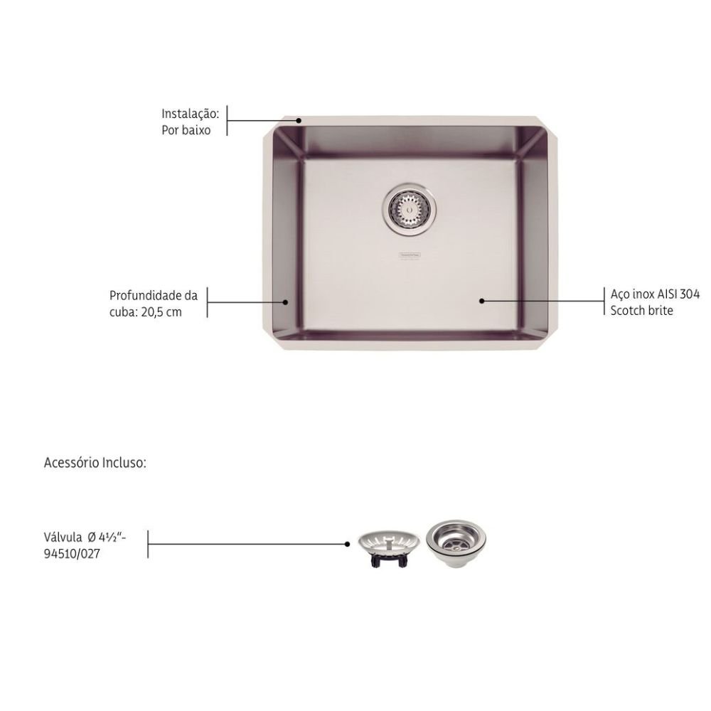 | Produto | Cuba Simples de Embutir com Válvula |