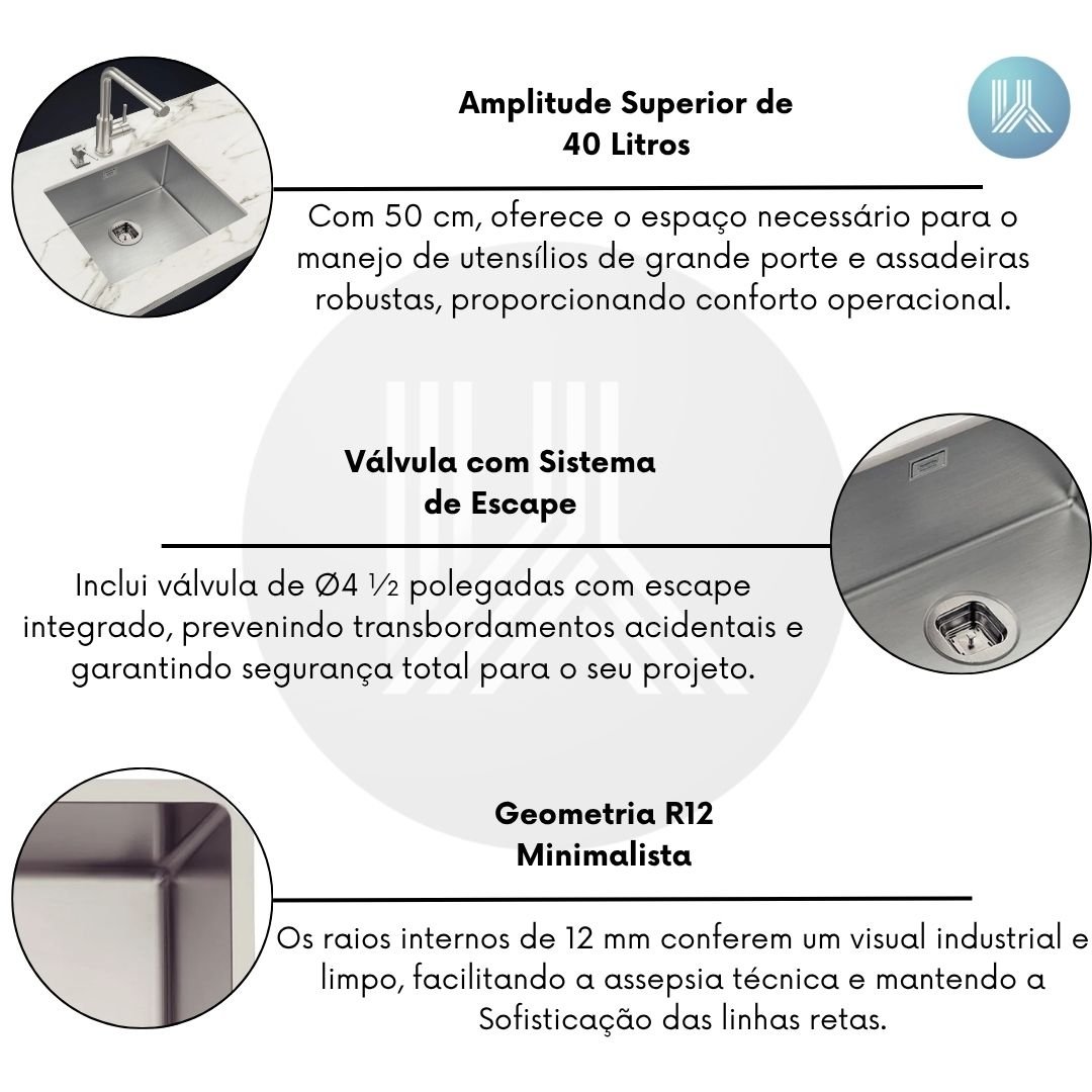 Projetos de cozinhas gourmet contemporâneas exigem soluções que acompanhem o ritmo de quem aprecia a alta gastronomia. O uso de cubas subdimensionadas ou de chapas frágeis é um erro comum que resulta em respingos constantes, ruídos incômodos e uma estética que empobrece pedras de Luxo. A Cuba Tramontina Quadrum 50U revoluciona essa funcionalidade básica, entregando uma bacia superior de 40 litros com a solidez de 1 mm de espessura. É a resposta técnica para quem busca transformar a área de preparo em um ambiente de Performance Semi-profissional, unindo a paz visual das linhas retas à eficiência de um espaço ampliado.