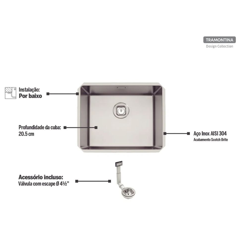 | Produto | Cuba Simples de Embutir com Válvula e Escape |