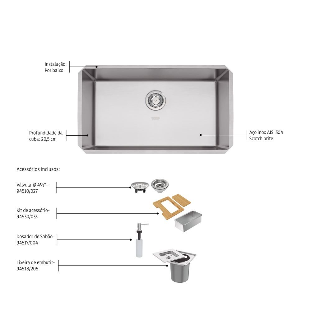 | Produto | Cuba Simples de Embutir com 4 Acessórios |