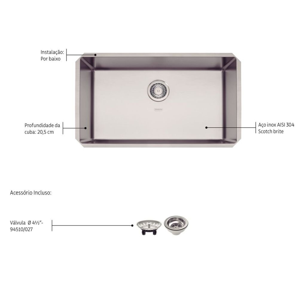 Acompanha válvula de 4 1/2 polegadas de fluxo otimizado, garantindo um escoamento ágil e eficiente, essencial para manter a dinâmica de uma cozinha de Performance Semi-profissional.