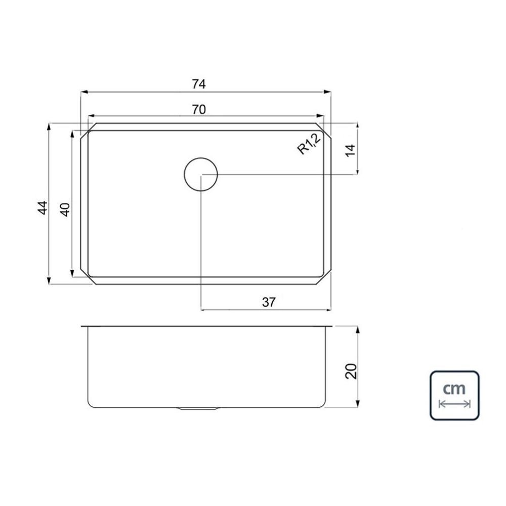 Cantos com raio de 12 mm que conferem um visual industrial moderno e minimalista, facilitando a assepsia técnica e reforçando o Requinte Funcional.