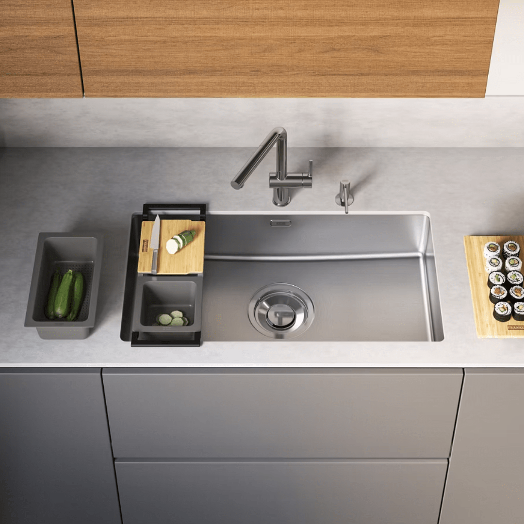 - Os acessórios são projetados para se integrar perfeitamente ao design da cuba.