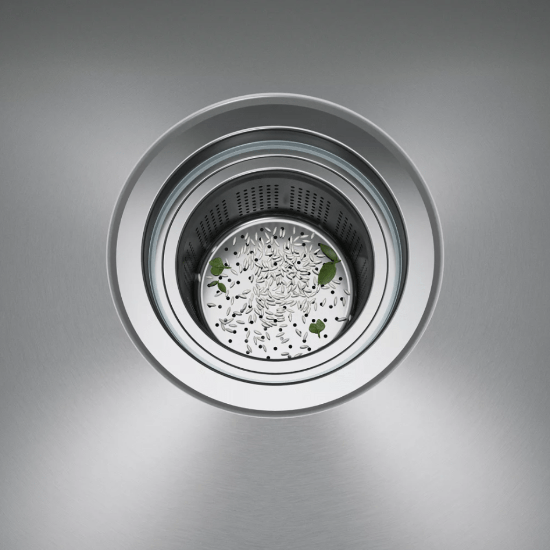 - Inclui um cesto coletor de resíduos de 7 polegadas, que facilita a remoção de resíduos e dispensa a necessidade de um triturador de alimentos.
