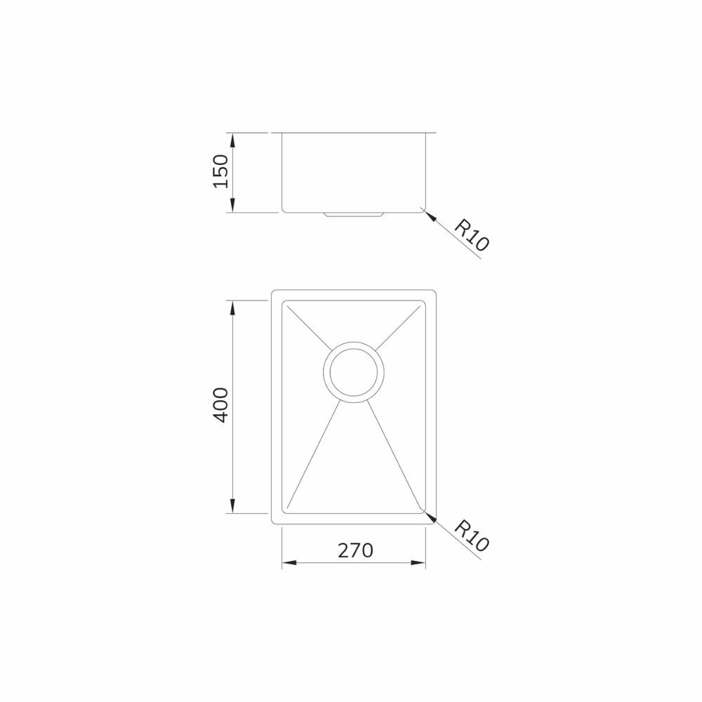 Com dimensões de 270 x 400 x 150 mm, a Cuba Retta LR-27 R10 é compacta e versátil, ideal para bancadas menores ou como cuba auxiliar em cozinhas planejadas. Seu acabamento escovado hairline proporciona um toque moderno e refinado, realçando o design minimalista da linha Retta. O raio R10 garante leveza ao visual e torna a peça prática para manter sempre limpa, sem abrir mão da estética sofisticada da Mekal.