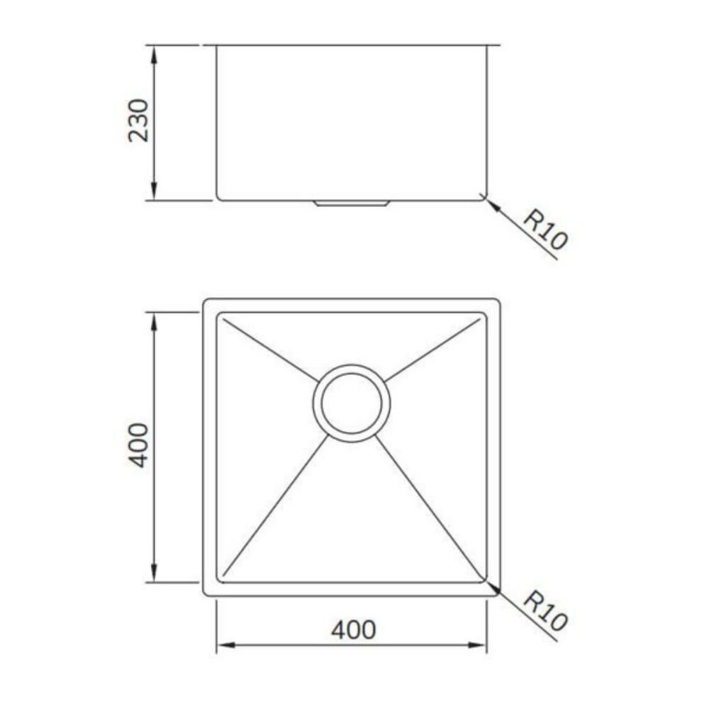Com dimensões internas de 400 x 400 mm e profundidade de 230 mm, a cuba oferece capacidade ideal para o uso cotidiano. Seu espaço interno oferece possibilidade de lavar panelas maiores, utensílios volumosos e preparo de alimentos de forma prática.