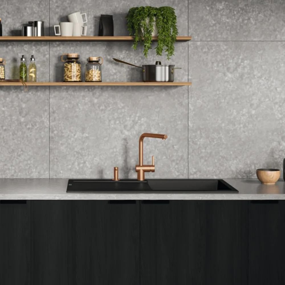 A tonalidade Antracite (cinza escuro metalizado) adiciona um toque artístico e representa as mais elegantes tendências de decoração para sua cozinha. Este acabamento impressionante e sofisticado, com revestimento PVD, permite que você combine a cuba com outros componentes da linha Masterpiece no mesmo tom, criando uma aparência perfeitamente alinhada e exclusiva.