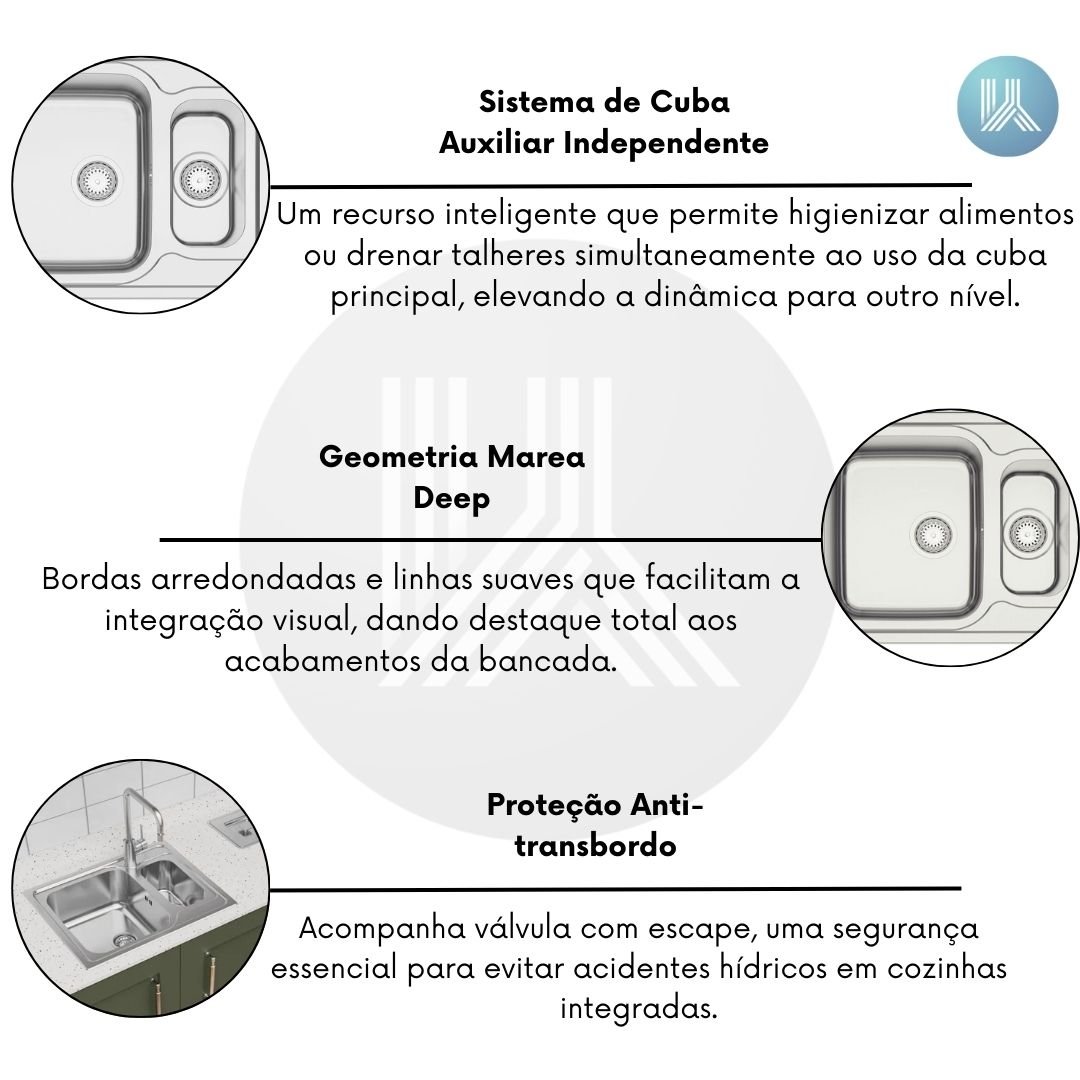 | Profundidade da Cuba Auxiliar | 16 cm |