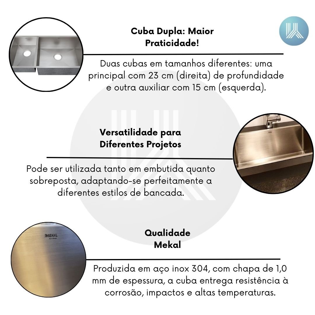 As dimensões amplas com duas cubas em tamanhos diferentes a tornam ideal para famílias que buscam espaço e conforto sem abrir mão da elegância. Uma peça exclusiva para quem deseja aliar durabilidade e estilo em cada detalhe.