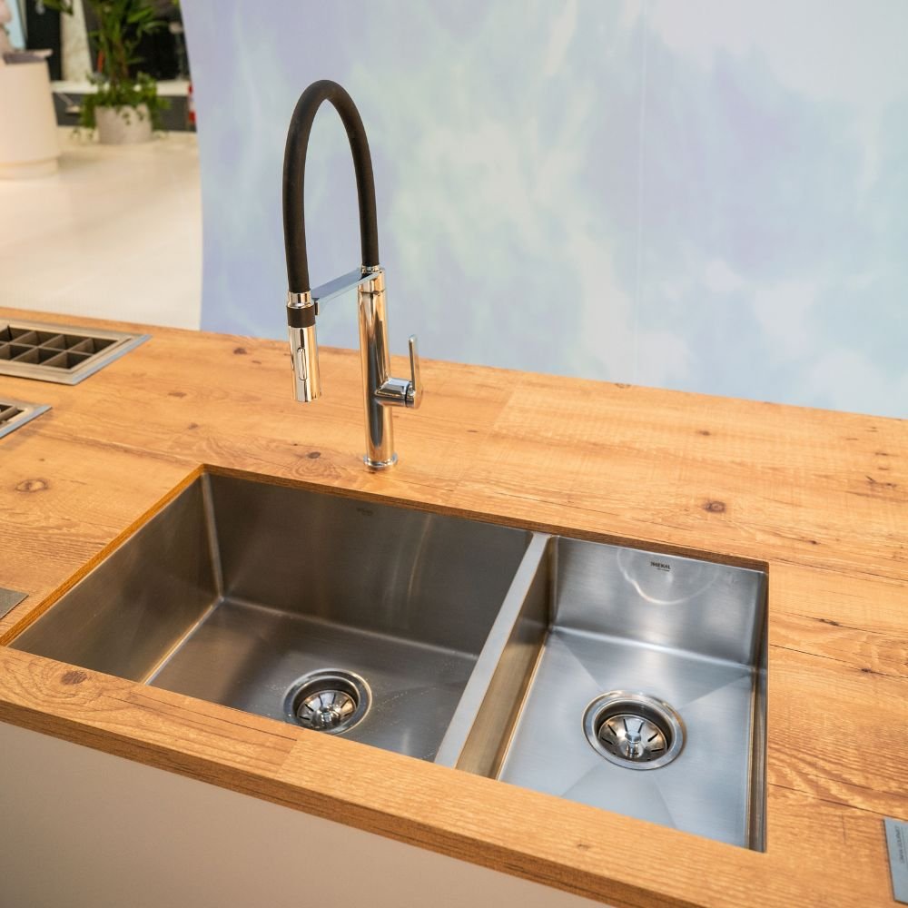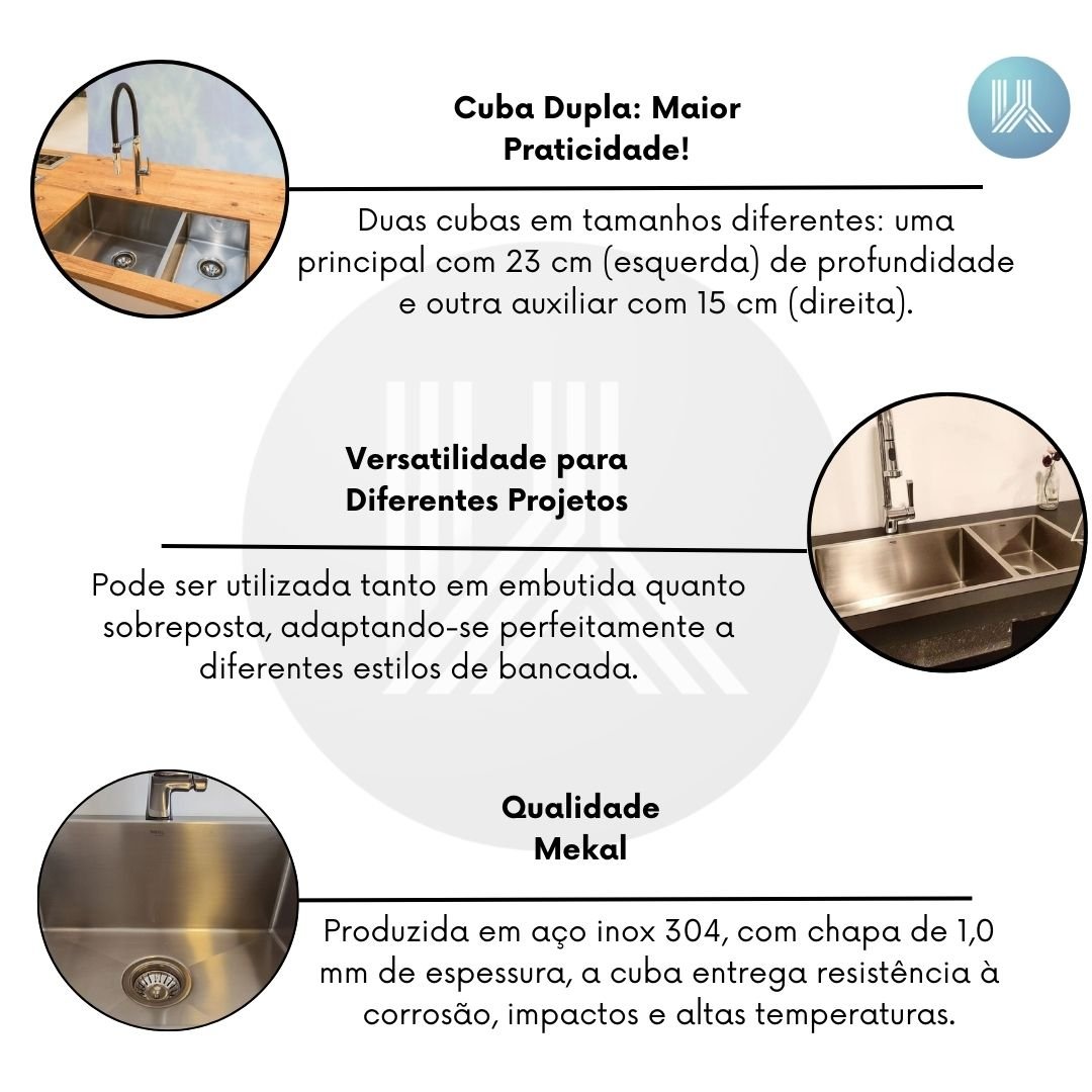 As dimensões amplas com duas cubas em tamanhos diferentes a tornam ideal para famílias que buscam espaço e conforto sem abrir mão da elegância. Uma peça exclusiva para quem deseja aliar durabilidade e estilo em cada detalhe.