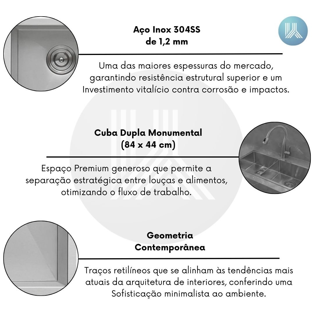 Em uma cozinha de Luxo, a área de preparo é o coração da atividade gastronômica, exigindo equipamentos que suportem o ritmo intenso sem perder a elegância. Cubas convencionais de baixa espessura costumam apresentar ruídos excessivos, amolgadelas e um desgaste prematuro que compromete a estética da bancada. A Cuba Dupla Rubinettos CUB2030 é a solução definitiva para quem não abre mão da excelência. Fabricada em aço inox 304 de alta densidade, ela oferece uma Performance Semi-profissional que transforma a rotina de limpeza e preparo em uma experiência fluida, silenciosa e de extrema Sofisticação.
