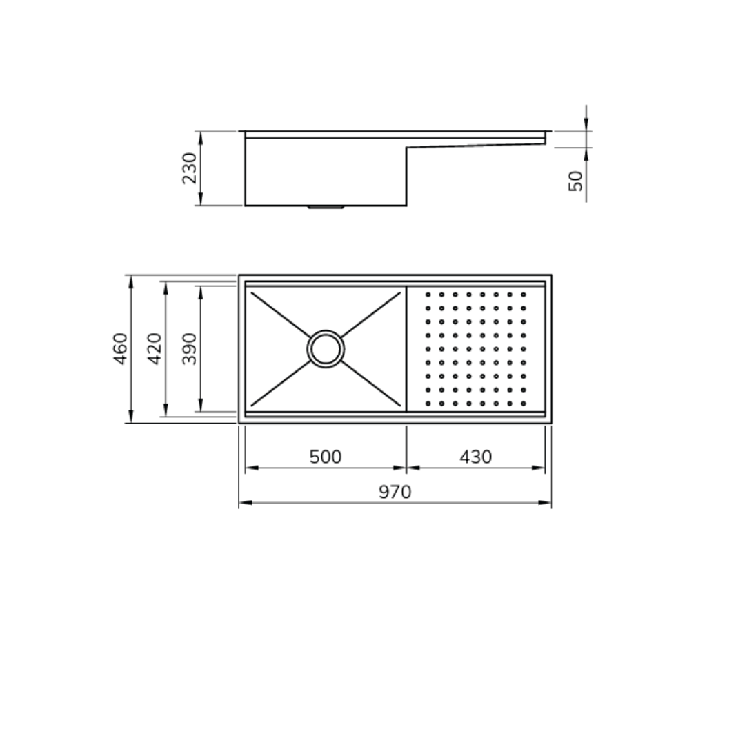 A Cuba Pianette PG-50 da Linha Gourmet Mekal é a materialização da robustez aliada a soluções inteligentes para bancadas de alto padrão. Com uma profundidade imponente de 23 cm, ela soluciona o desafio de manusear grandes utensílios sem respingos, oferecendo ainda uma área auxiliar estratégica que funciona como escorredor. Fabricada em aço inox 304 de 1.2mm, esta peça destaca-se pela durabilidade extrema e pelo acabamento escovado artesanal. É um investimento duradouro e versátil, disponível tanto para instalação de embutir quanto de sobrepor, permitindo a escolha do lado do escorredor (direito ou esquerdo) para se adaptar milimetricamente ao seu layout e rotina na cozinha.