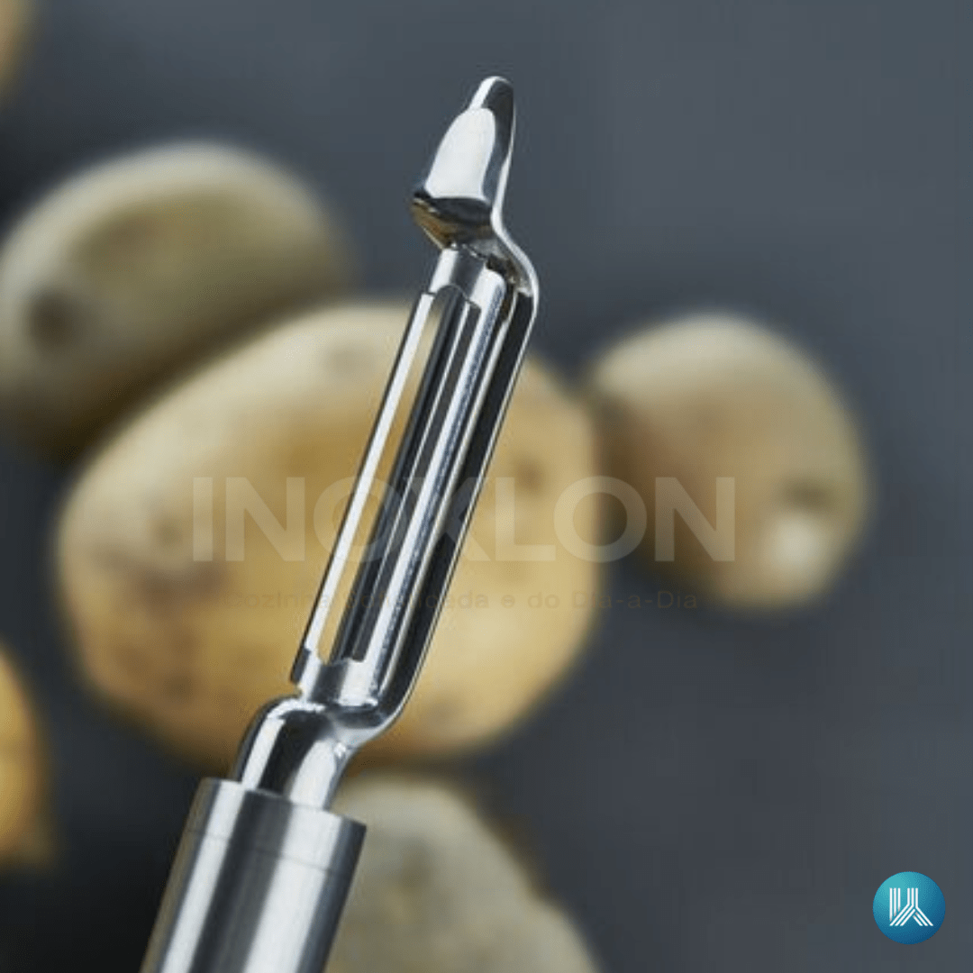Qualidade Inquestionável (Aço Inox): Fabricado em Aço Inoxidável premium, o descascador é resistente à corrosão e garante um investimento duradouro em sua cozinha gourmet.