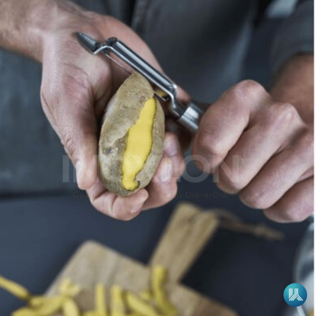 Descasque Fino e Sem Esforço: A lâmina dupla afiada soluciona o problema do desperdício de alimento, garantindo que o descasque seja muito fino e realizado com máxima eficiência.