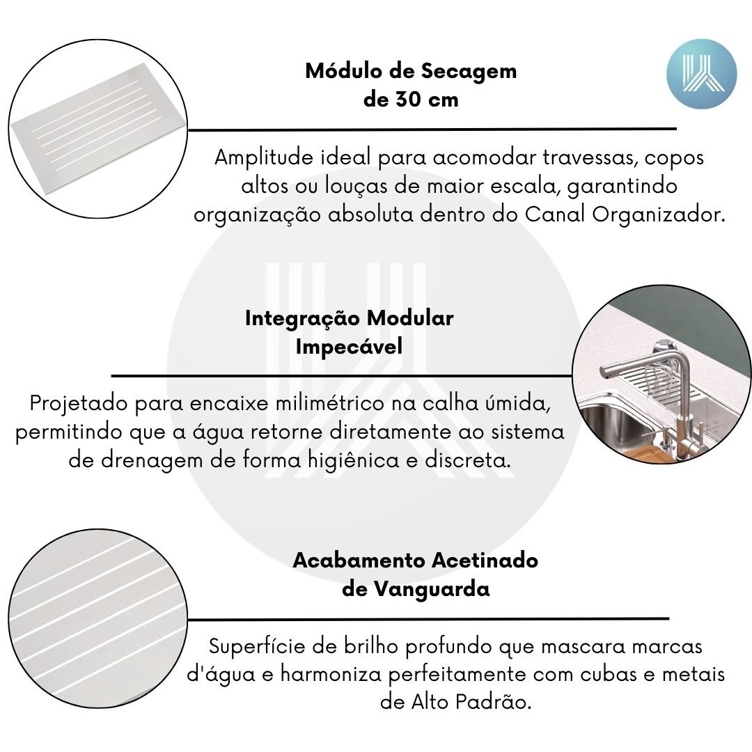 Projetado para encaixe milimétrico na calha úmida, permitindo que a água retorne diretamente ao sistema de drenagem de forma higiênica e discreta.