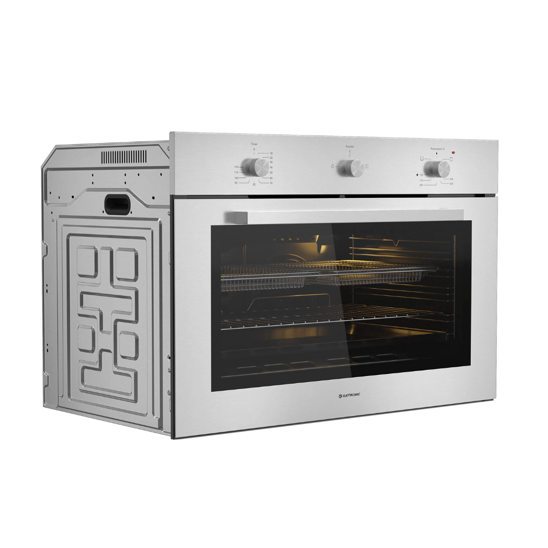 O Forno Luce Gás 90 cm é a materialização da potência e do espaço na cozinha contemporânea. Com uma cavidade interna impressionante de 125 litros, este modelo soluciona a necessidade de preparar pratos volumosos com a suculência que só o cozimento a gás proporciona. Equipado com dois ventiladores de convecção, ele garante que o calor seja distribuído de forma homogênea, resultando em assados perfeitos em menos tempo. É um investimento duradouro com acabamento em aço inoxidável e porta de vidro triplo, que assegura isolamento térmico superior e segurança total para sua família através de suas válvulas de segurança integradas.