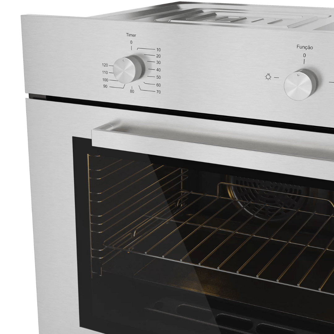 Segurança Máxima (Válvula de Gás e Vidro Triplo): O sistema soluciona a preocupação com acidentes, bloqueando o gás caso a chama se apague e mantendo a porta externa em temperatura segura ao toque.
