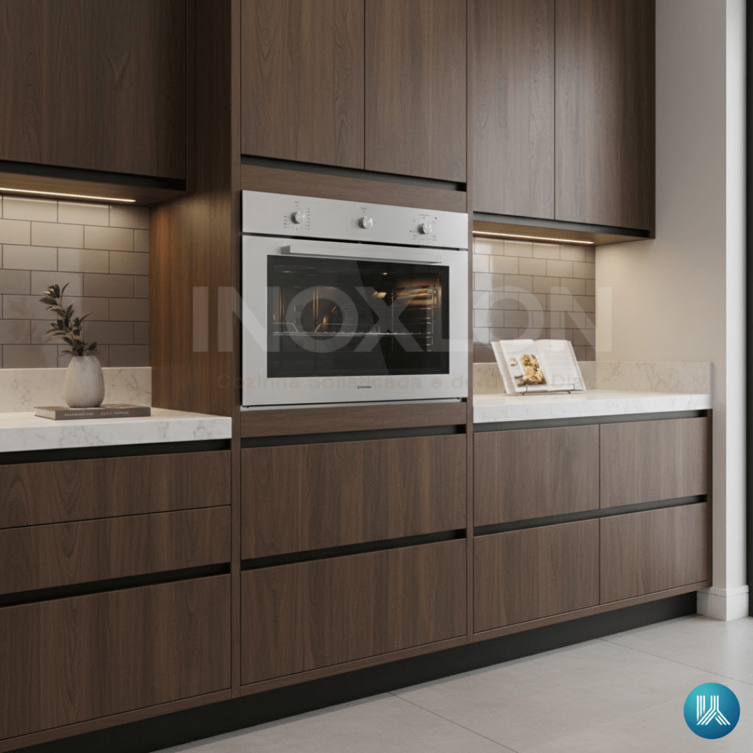 Guia de Limpeza e Conservação: Para preservar o design refinado e a eficiência do seu forno Luce, a manutenção deve ser realizada com precisão técnica. IMPORTANTE: Antes de qualquer limpeza, desconecte o aparelho da rede elétrica e certifique-se de que ele esteja frio. Nas superfícies em Aço Inoxidável, utilize apenas água ou produtos específicos para inox, secando imediatamente com um pano macio para evitar manchas. Para as partes esmaltadas e o interior, a limpeza é facilitada se realizada enquanto o forno ainda estiver morno; utilize uma esponja macia com água quente e sabão neutro. No painel de controle, remova resíduos de gordura imediatamente com produtos leves para não danificar a serigrafia. As prateleiras aramadas e os guias laterais são removíveis, facilitando o acesso total à cavidade. ADVERTÊNCIA! Nunca utilize limpadores a vapor, palha de aço, produtos ácidos ou raspadores de metal no vidro triplo, pois podem causar microfissuras e levar à quebra do material. Verifique periodicamente a borracha de vedação para garantir que o calor permaneça retido com máxima eficiência.