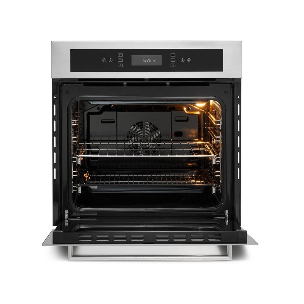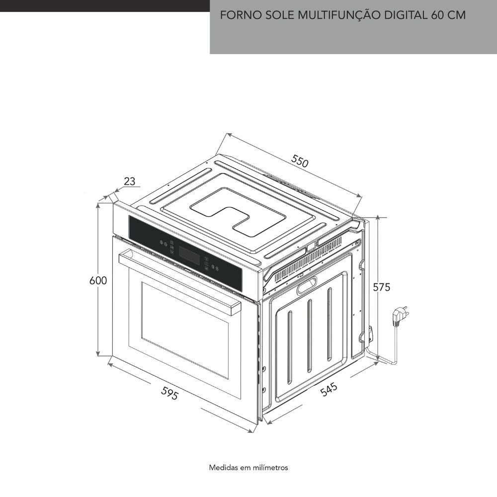 O Forno Sole Multifunção Digital 60 cm reúne design em inox e vidro preto com 67 Litros de capacidade, 8 funções programáveis, grill elétrico e convecção eficiente. Ideal para cozinhas embutidas, oferece controle digital preciso, resultados uniformes e acabamento premium que valoriza qualquer projeto. Tem operação intuitiva e acabamento resistente e durável para uso diário.