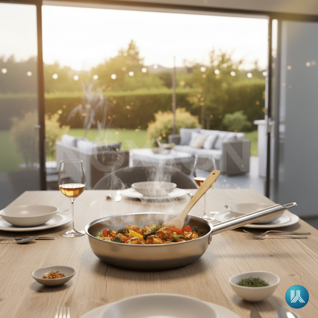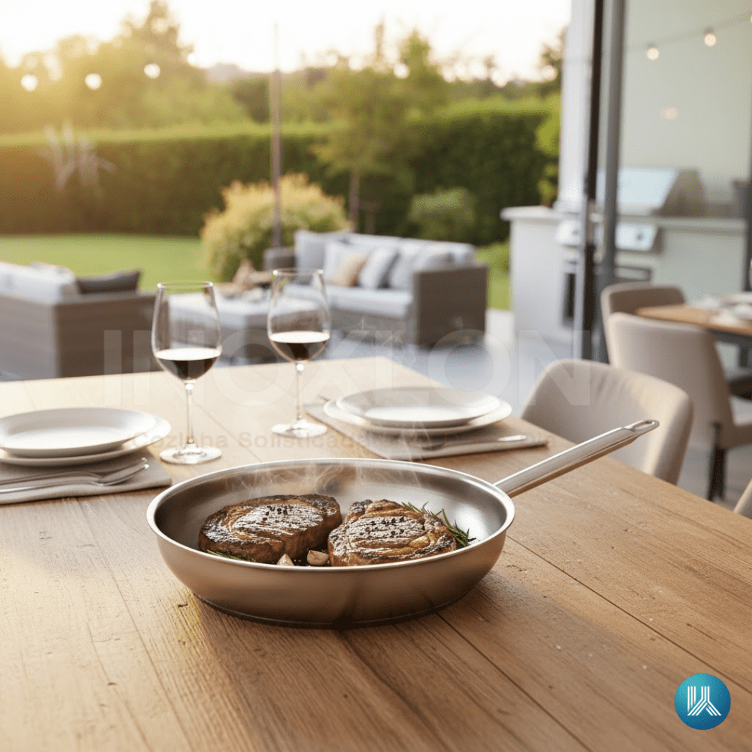Durabilidade Extrema: O acabamento acetinado em Aço Inox 18/10 resolve o problema de panelas que riscam facilmente, mantendo a aparência de luxo mesmo com uso intenso.