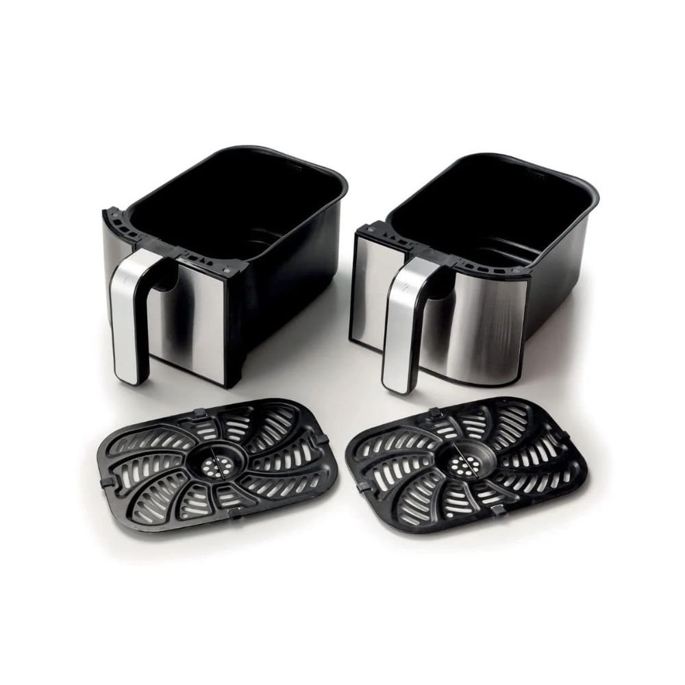 A tecnologia Dual Cook permite preparar duas receitas diferentes ou grandes quantidades de uma só vez, utilizando os dois cestos de 4,5 litros cada. É a solução ideal para otimizar o tempo na cozinha, garantindo refeições completas de forma prática e rápida. Prepare carnes, peixes, batatas e petiscos simultaneamente, mantendo o sabor e a textura ideais em cada preparo.