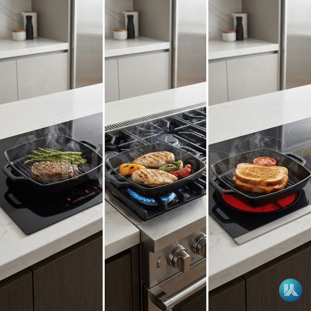 Compatibilidade Total: Funciona perfeitamente em cooktops de indução, gás e elétricos, oferecendo flexibilidade total para cozinhas modernas.