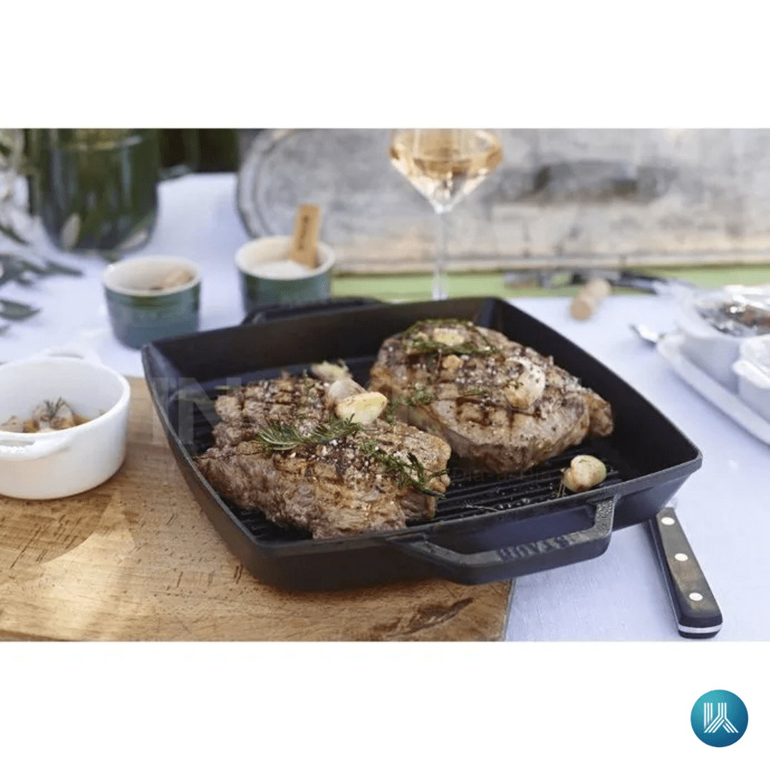A Grelha Quadrada STAUB de 33 cm na cor Preto é a escolha dos chefs para trazer o autêntico sabor do grelhado para dentro da cozinha gourmet. Produzida na França sob os rigorosos padrões de qualidade do grupo ZWILLING, esta peça de ferro fundido esmaltado une a tradição secular à inovação moderna. Com dimensões generosas de 33 cm e formato quadrado, ela oferece uma ampla área de cozimento, ideal para preparar carnes, peixes e legumes para toda a família simultaneamente.