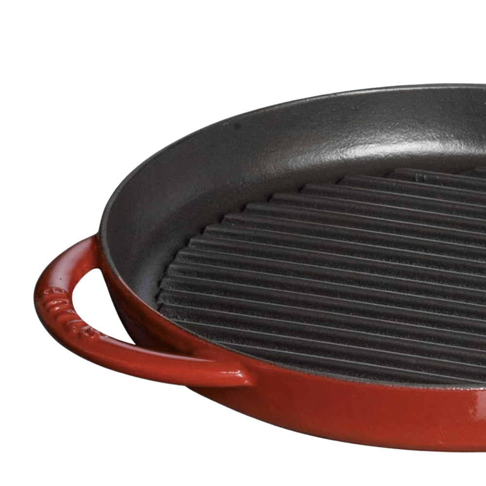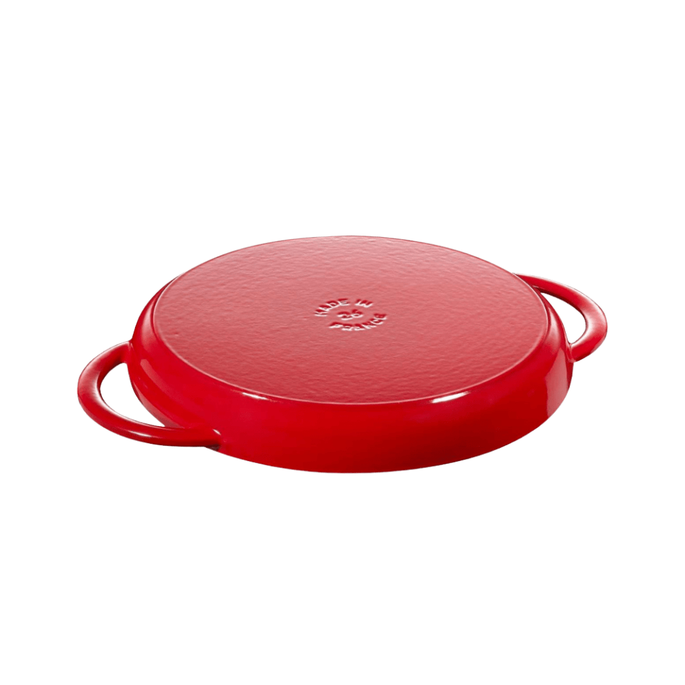 A grelha de ferro fundido quadrada esmaltado Staub cereja de 26 cm é ideal para o uso na cozinha como na churrasqueira. Compatível com todos os fogos e fornos, a grelha também pode ser usada na indução. Com suas duas alças é fácil de segurar e facilita o transporte para a mesa. O interior da grelha é esmalte preto mate a marca registrada Staub. Este esmalte de qualidade superior oferece melhor resistência a arranhões e facilita a manutenção. Composto de ferro fundido, uma liga de ferro rica em carbono, um dos materiais que melhor retém o calor.