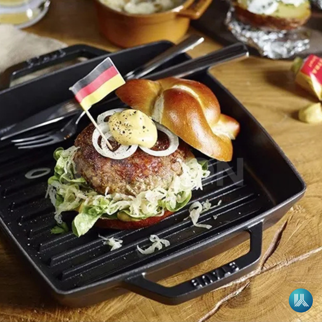 A Grelha Quadrada STAUB de 23 cm com Duas Alças é a peça fundamental para recriar o sabor autêntico do grelhado em sua cozinha de alto padrão. STAUB, integrante do renomado grupo ZWILLING e feita na França sob rigorosos padrões de qualidade, é a escolha dos Chefs e representa um investimento duradouro em legado de excelência.